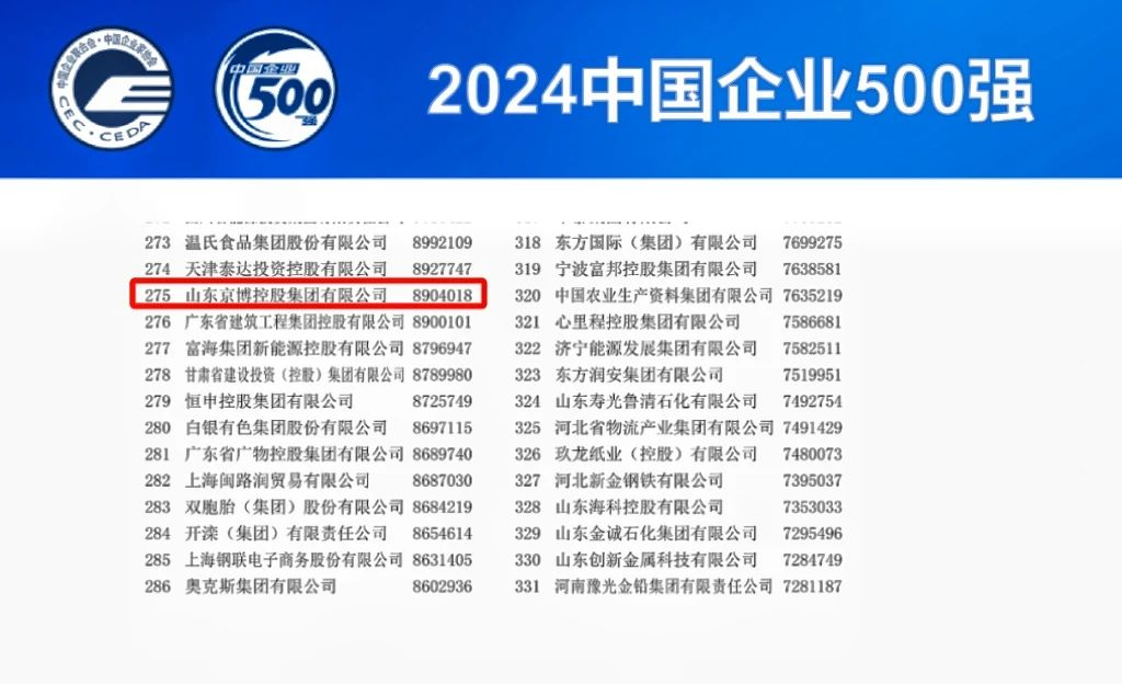 目前位列中國企業500強第275位、中國民營企業500強第98位。